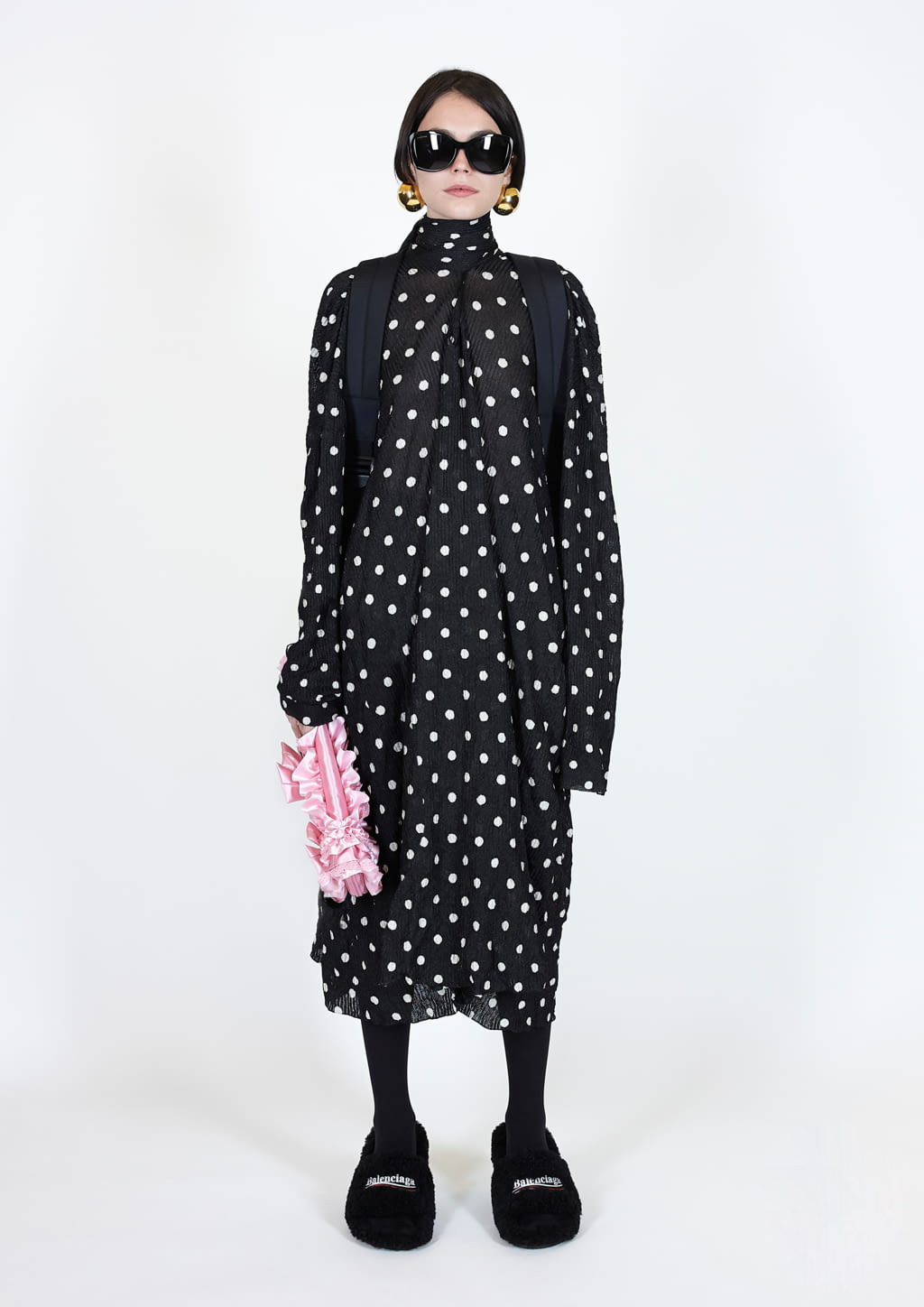 I pois in colori neutri sono sicuramente la scelta più utilizzata e anche Balenciaga ha deciso di proporre un abito in nero con i pallini bianchi, ma in una versione più casual ed informale. Ampio e midi, con le maniche lunghe, la trema a costine e lo scollo a V, è perfetto per chi vuole seguire le tendenze senza rinunciare alla comodità!