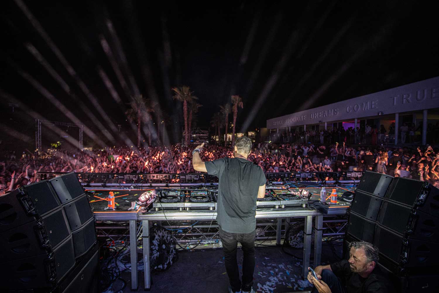 è coinciso con un evento difficile da definire nei canoni tradizionali, con le definizioni concerto e deejay set non sufficienti, se usate da sole, per raccontare l’esplosività e l’intensità vissuta nella capatale del divertimento dell’Adriatico. Energia a non finire, partecipazione massima di una platea sempre pronta a rispondere presente alle sollecitazioni, un tutt’uno tra artista e spettatori degno di una esibizione che rimarrà scolpita nella mente di chi ha avuto la fortuna di prendervi parte.