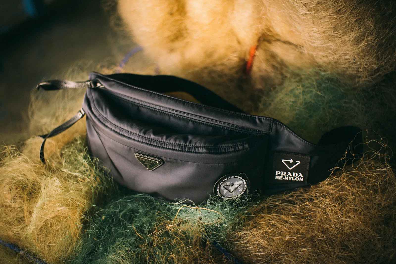 L’innovazione in campo tessile non si limita solamente al riuso degli scarti vegetali, estendendosi alla rigenerazione di materiali esistenti ed alla creazione di nuove fibre in laboratorio. Le fibre rigenerate dalla plastica oceanica rappresentano un passo cruciale nella lotta contro l’inquinamento. Poliammidi come Econyl trasformano reti da pesca abbandonate e altri rifiuti plastici in nylon di alta qualità. Viene utilizzato per activewear, costumi da bagno e persino capi di lusso. Il riciclo riesce così ad avere un’estetica raffinata. Rilevante in questo senso la collaborazione con Prada Re-Nylon che, attraverso un processo di depolimerizzazione, purificazione e trasformazione dei nuovi polimeri in fili, trasforma questo materiale in nuovo tessuto, e quindi in iconici design.