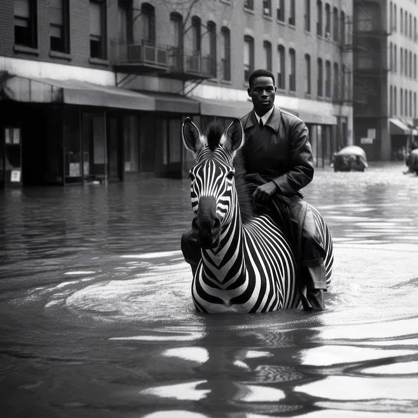 Nelle sue immagini, scaturite dall’intelligenza artificiale, si trovano meduse che fluttuano sopra i tetti di una New York inquinata, animali che si prendono cura di orfani per le strade, e altre situazioni al limite del bizzarro. Sono fotografie che a un primo sguardo sembrano reali, ma che presto destabilizzano la percezione, e, spingono a chiedersi: “E se…?” È la fotografia che diventa una bugia così convincente da farci dubitare dei nostri ricordi.
